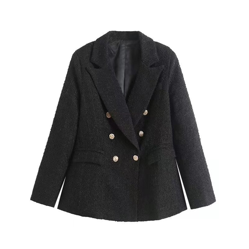 THEME 21 Women's Textured Mid-Length Double-Breasted Blazer
